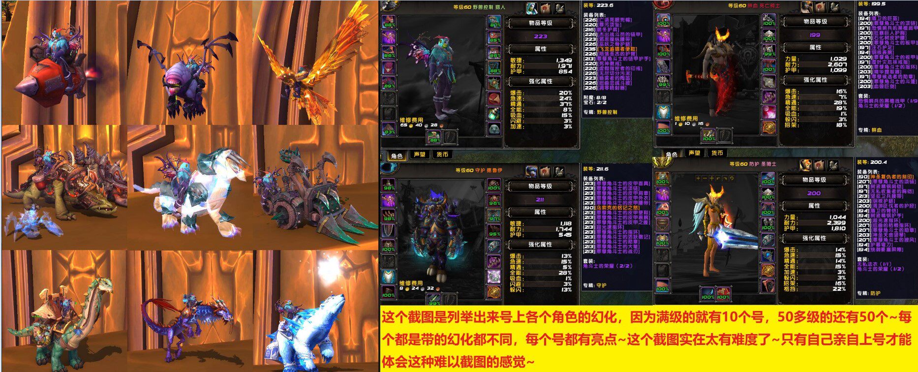 魔兽世界近700坐骑3W+成就大小幽灵虎新雷龙炉铸角斗士龙雪人套