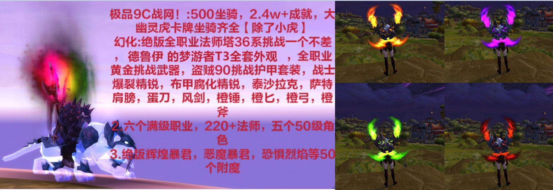 魔兽世界账号全职业T3套11职业法师塔2W6成就幽灵虎雷龙650只坐骑
