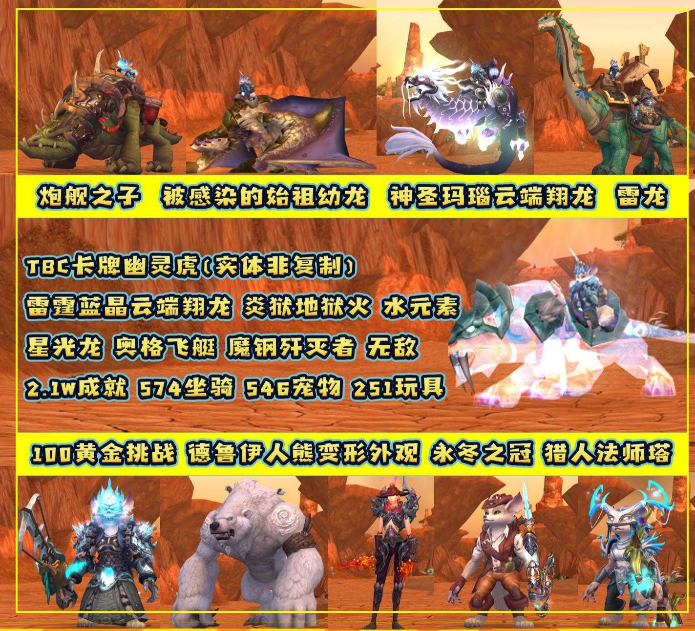 魔兽世界猎人法师塔638坐骑幽灵虎雷龙怒之煞炮舰蓝晶成品账号