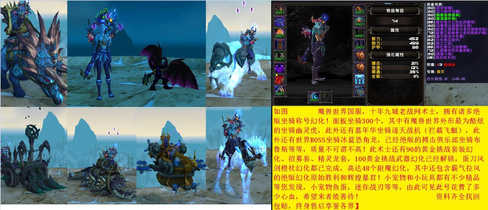 魔兽世界账号法师声望老号辉煌原始恶魔幽灵虎雷龙怒之煞700坐骑