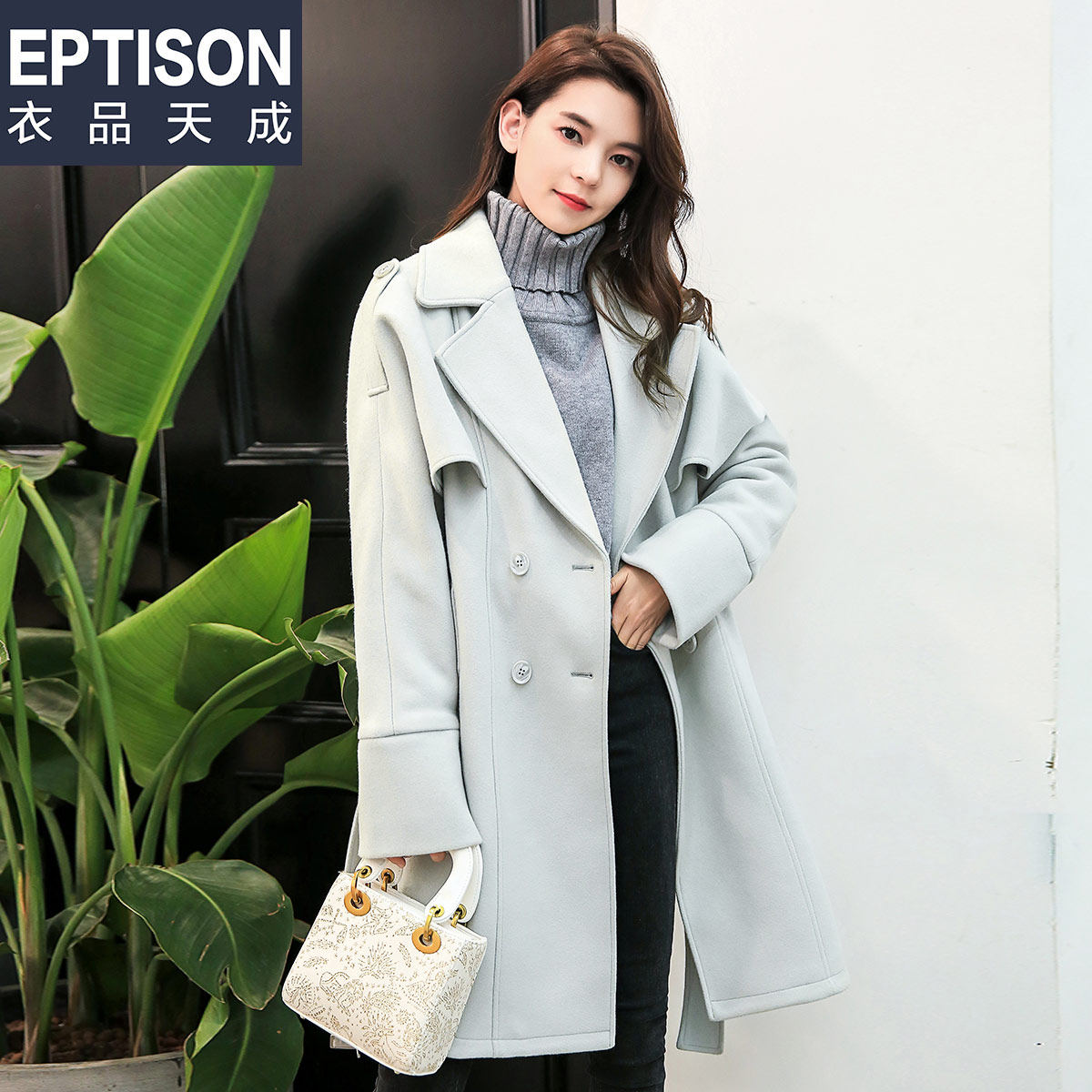 韩版气质修身显瘦中长款秋冬新品毛呢子外套女大衣上衣学生双排扣