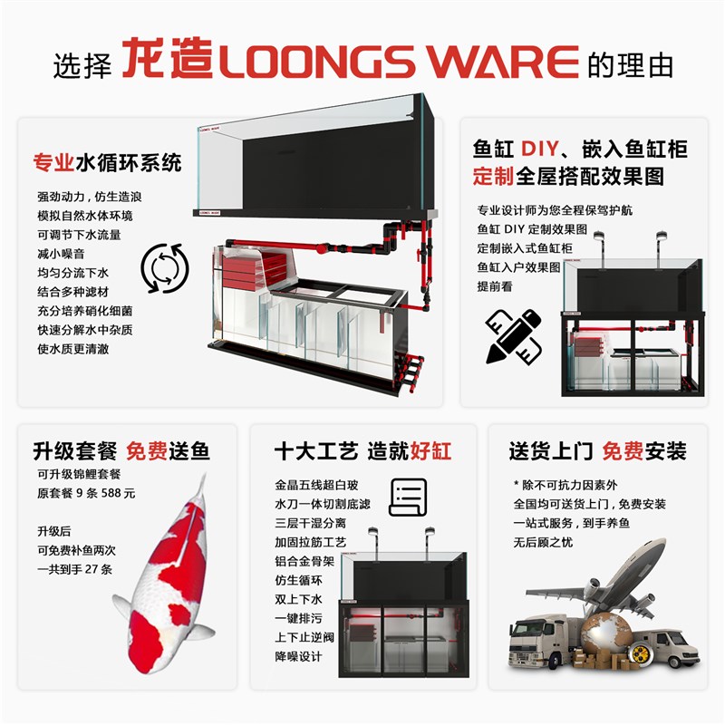热销龙造溪流缸侧溢流鱼缸客厅鱼缸带柜子一体中大型底滤鱼缸造景