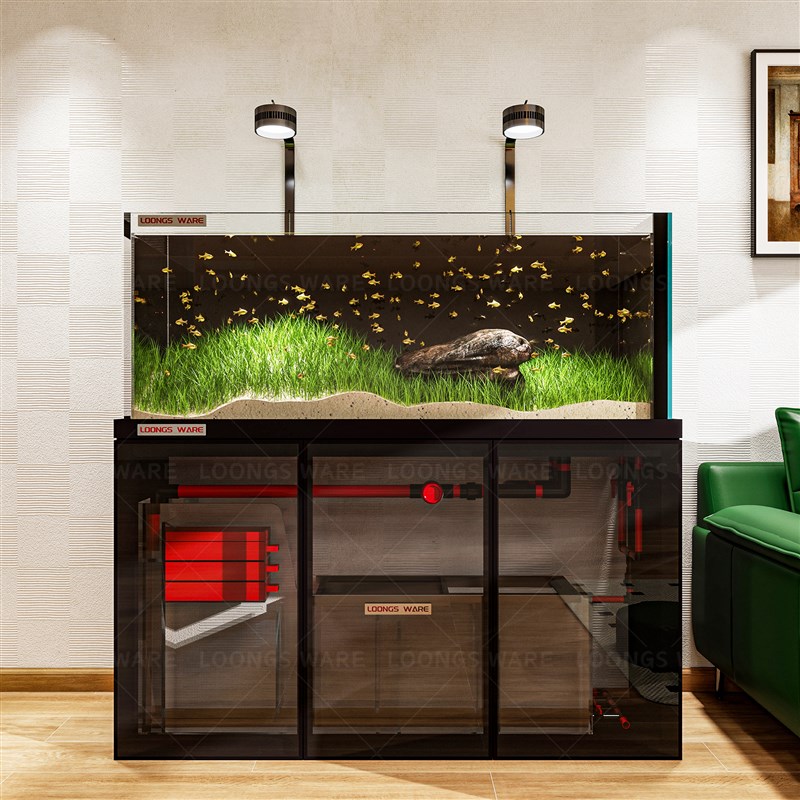 高端超白玻璃龙鱼缸客厅大型家用免换水底滤金鱼缸落地生态水族箱
