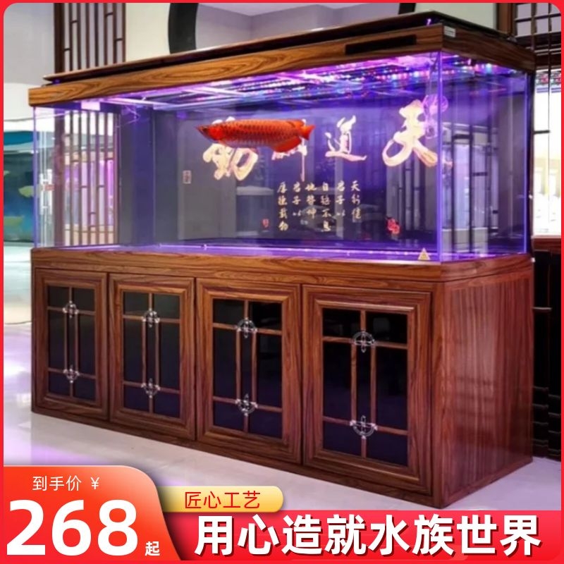 鱼缸客厅大型屏风底过滤中式定制实木家用办公生态超白玻璃龙鱼缸