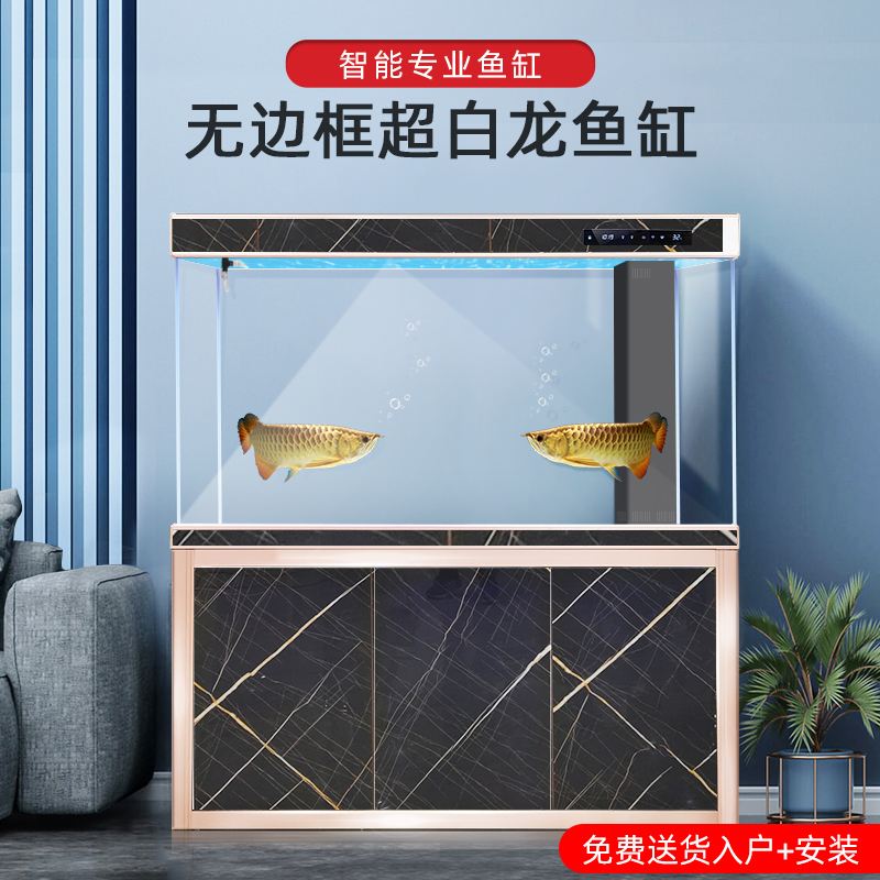 龙鱼精养缸鱼缸客厅大型家用落地水族箱超白玻璃底过滤生态免换水
