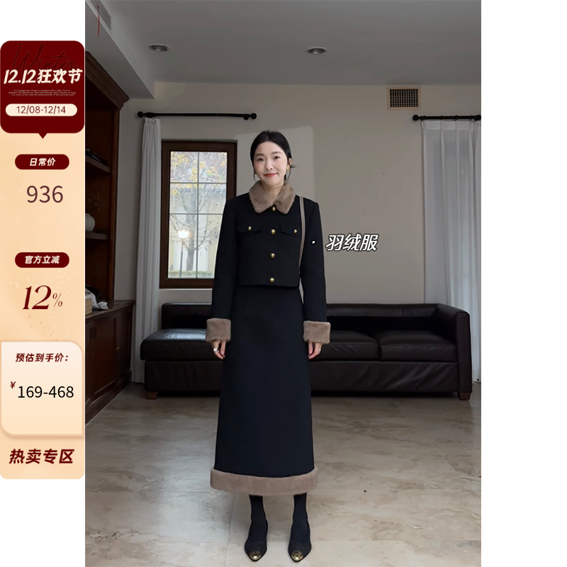 轻熟风毛呢套装女秋冬新款小个子名媛小香风时髦外套半身裙两件套