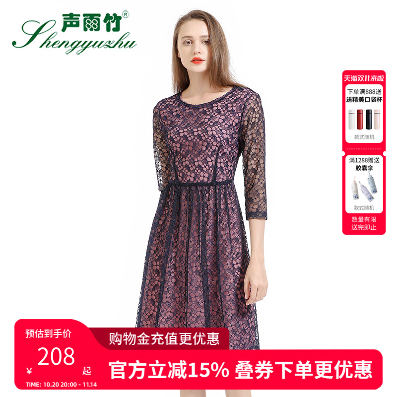 声雨竹专柜同款秋季新款连衣裙气质甜美修身薄款五分袖中裙A字裙
