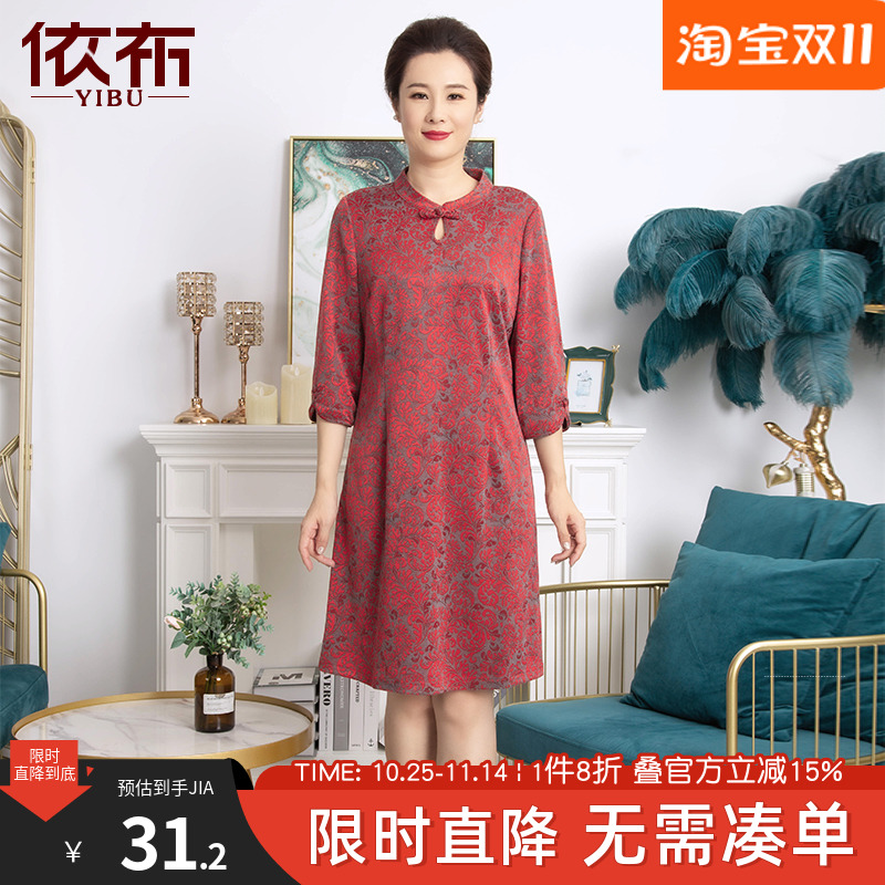 依佈中老年女士气质新中式连衣裙优雅妈妈装中裙宽松显瘦中袖裙子