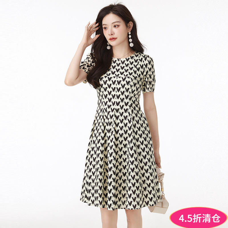 梵凯连衣裙浪漫心形印花春秋甜美气质长袖鱼尾中裙小个子通勤裙子