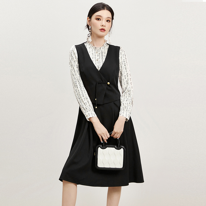 2025年Outlets专柜 汉货精品HH秋装优雅气质假两件修身中裙连衣裙