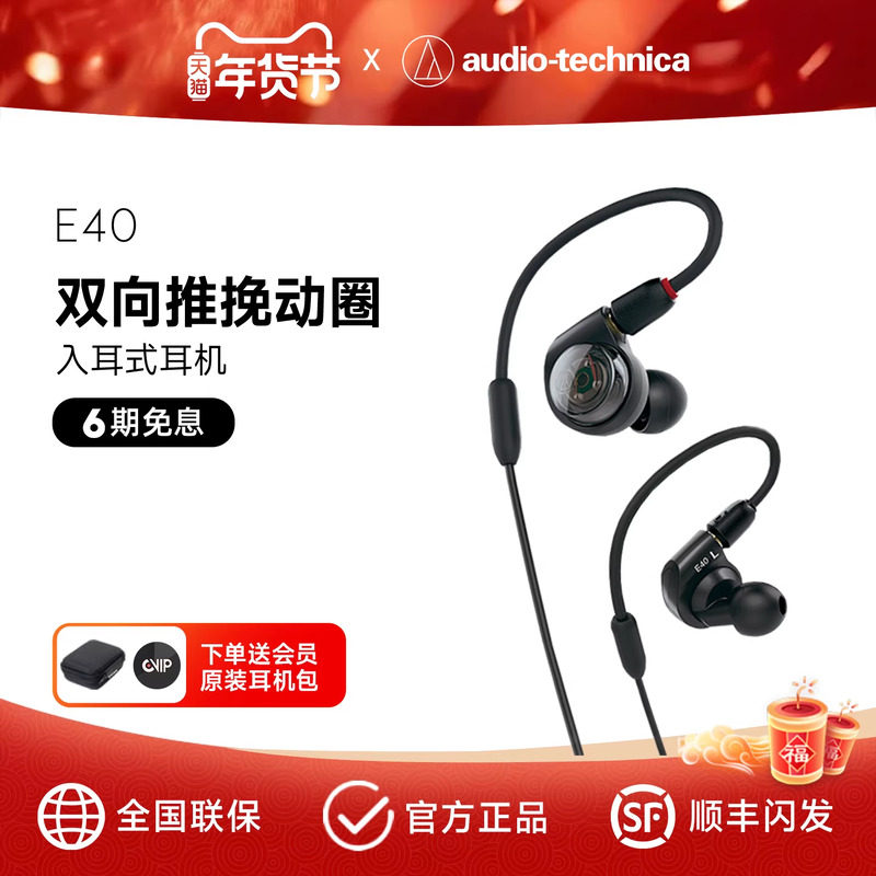 铁三角ATH-E40入耳式HIFI录音室乐器人声监听耳挂式耳机可换有线