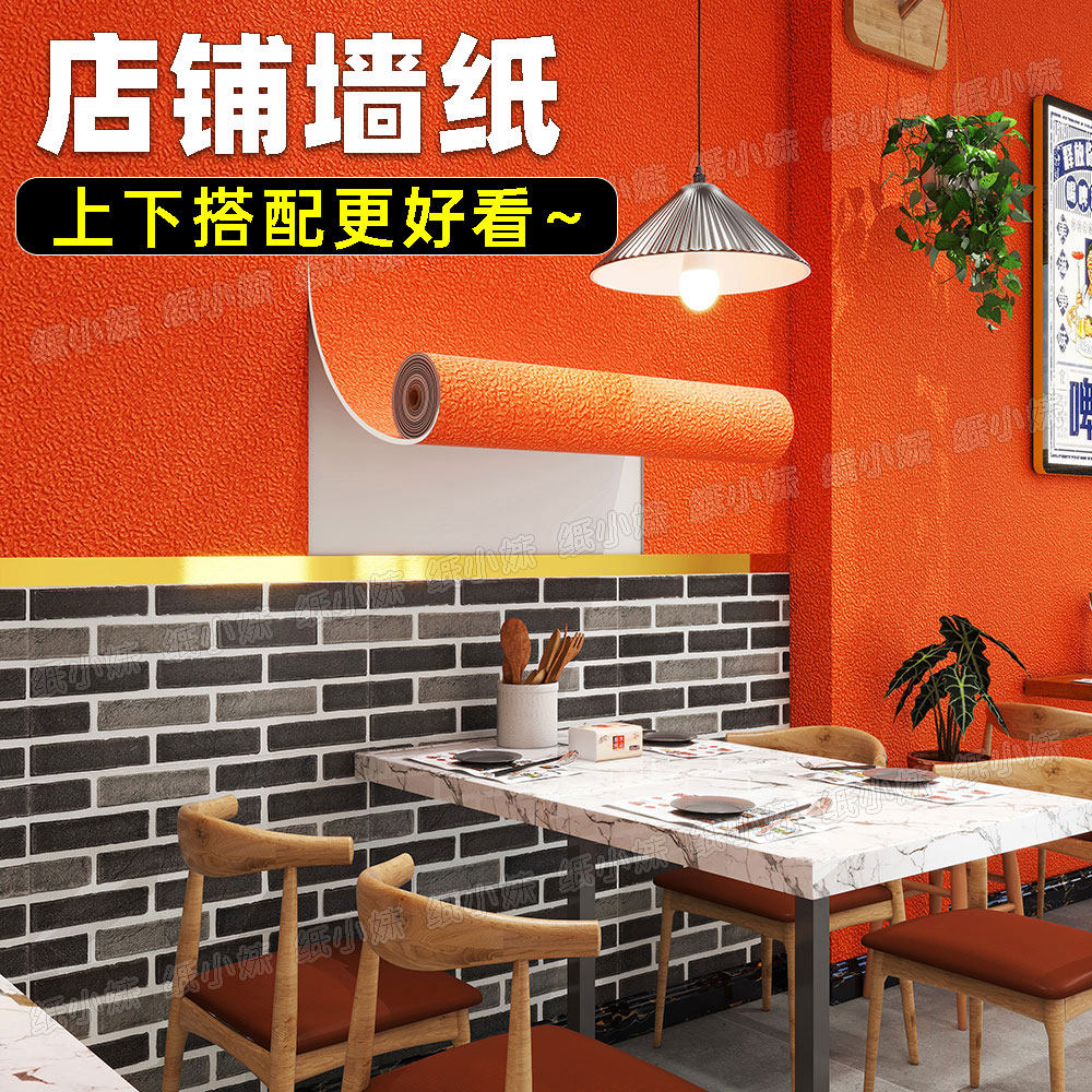 橙色墙纸自粘商用店铺装修壁纸3d立体墙贴文化砖纹硅藻泥墙裙贴纸