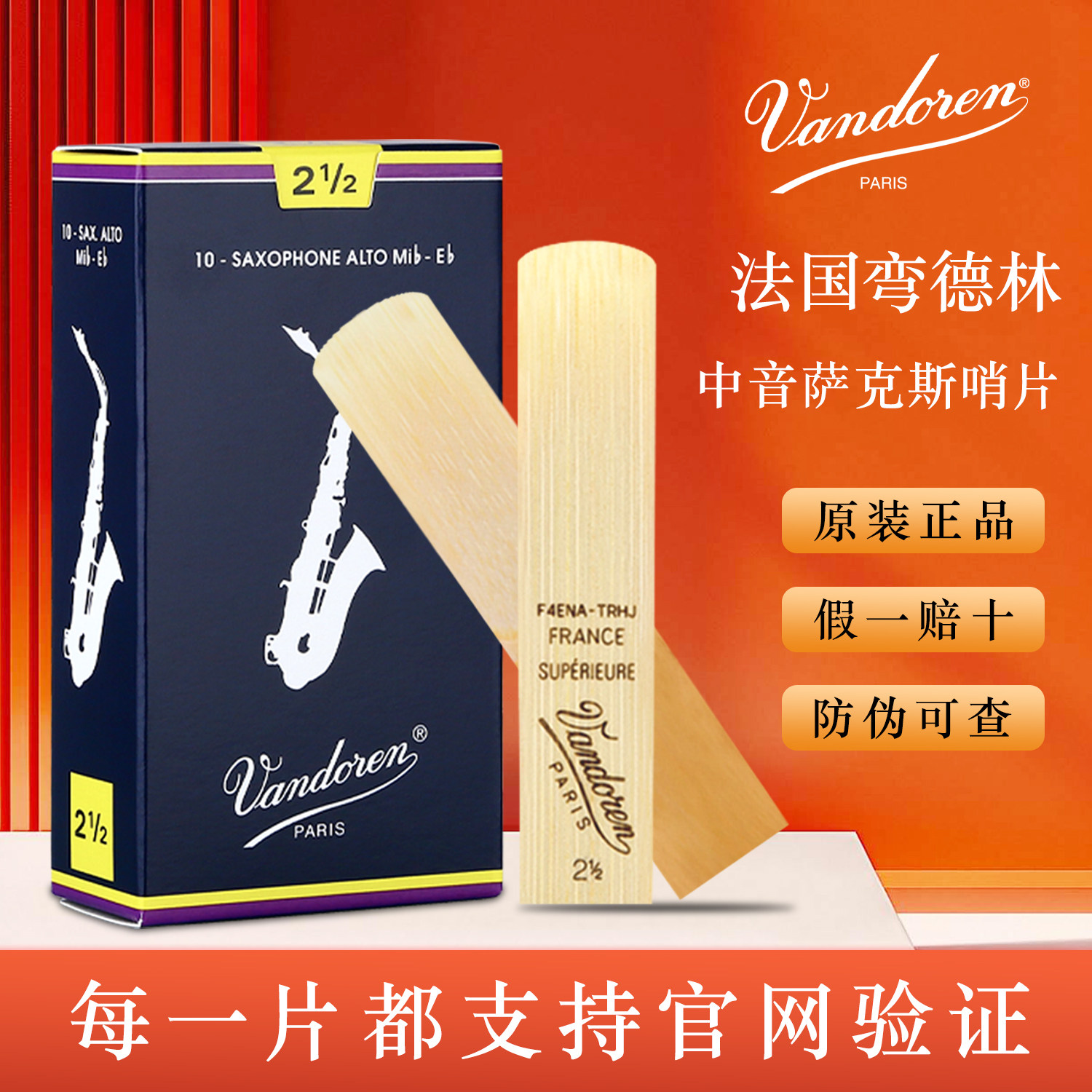 Vandoren弯德林哨片蓝盒中音萨克斯哨片降E调芦苇法国进口2.5号3