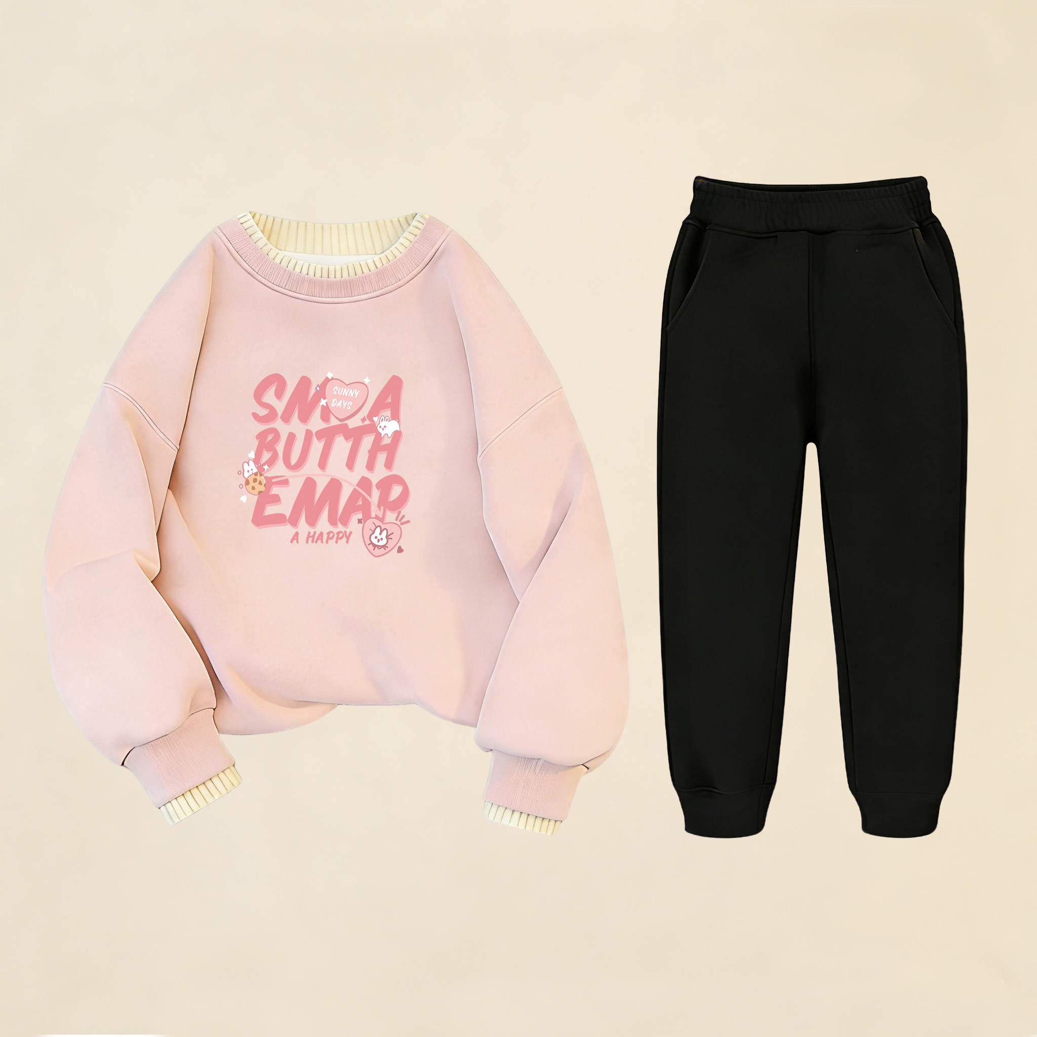 假两件圆领韩版卫衣女童套装两件套卫裤时尚秋冬新款加绒洋气衣服