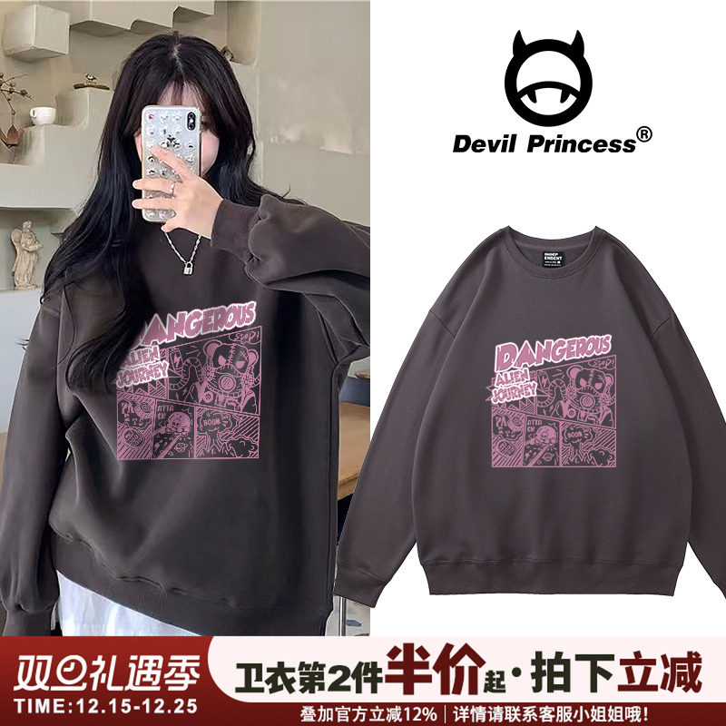 美式甜酷风韩版卫衣女2025新款宽松ins高街潮牌oversize无帽上衣