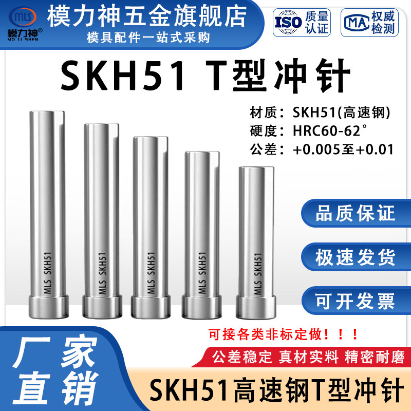 模具冲针SKH51高速钢加硬T型冲头五金模具压孔非标定制0.8到10*60