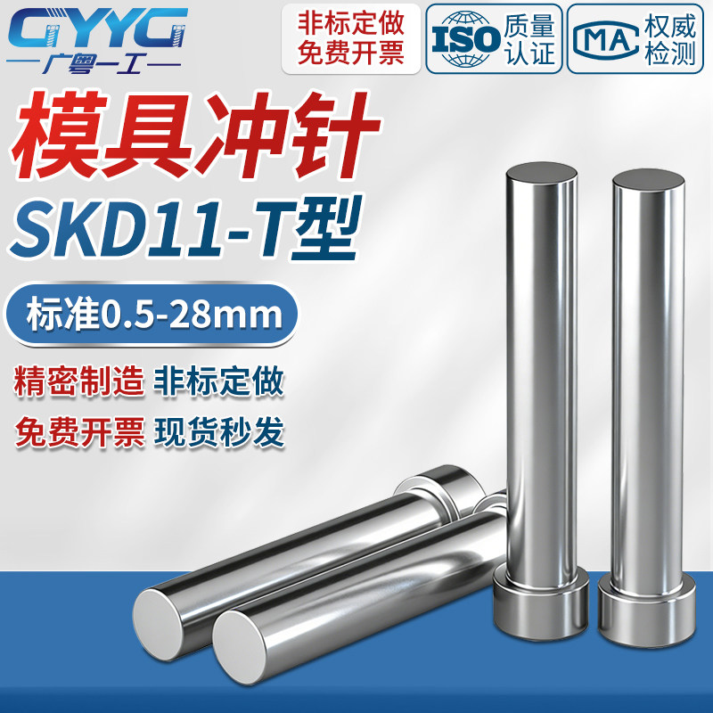 出口品质全尺寸模具冲针冲头SKD11加硬T型圆柱杆冲孔配件非标定制