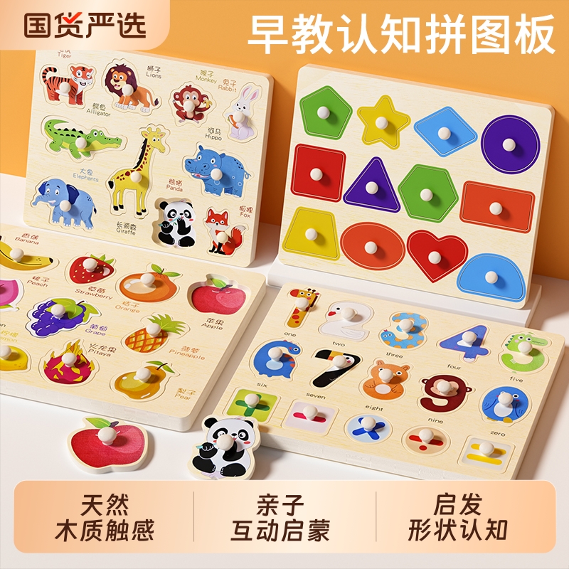 2025新款儿童木制拼图拼版宝宝益智玩具手抓板1-3岁数字配对嵌板