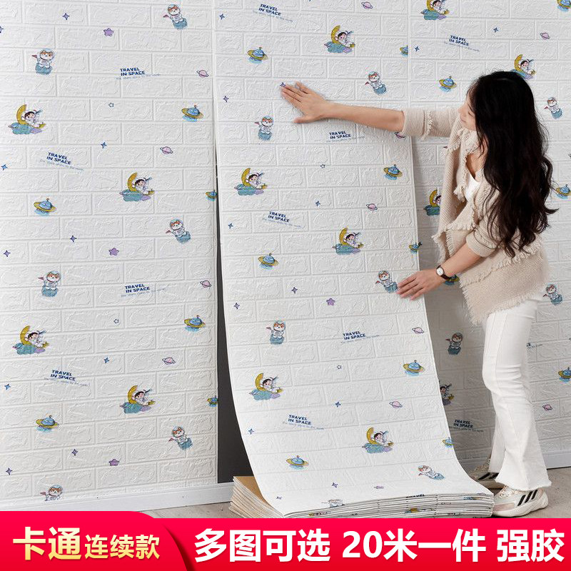 卡通图案3d立体墙贴纸温馨儿童房卧室翻新装饰贴防水自粘泡沫砖纹