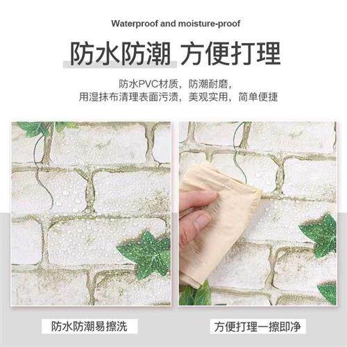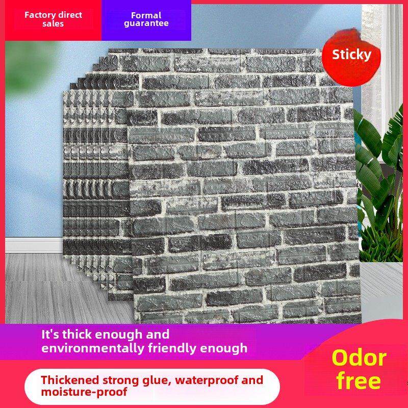 防水自粘墙纸复古3d立体砖纹墙贴纸墙面翻新装饰客厅电视背景壁纸