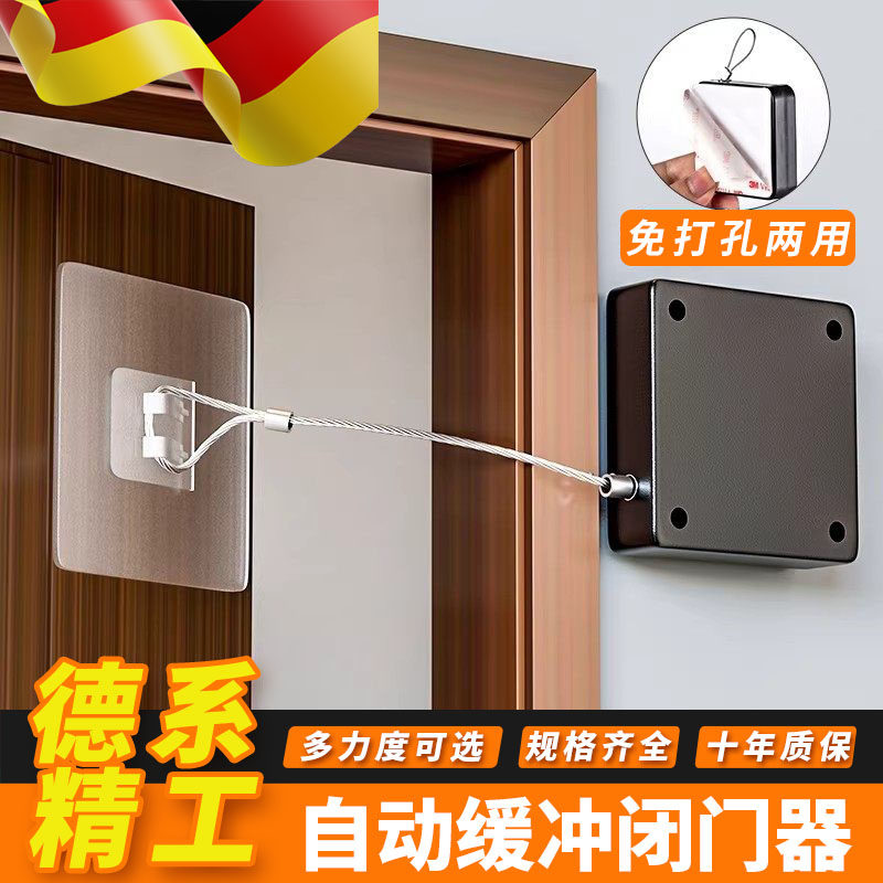 简易自动拉绳闭门器阻尼缓冲家用免打孔关门神器卫生间静音关门器