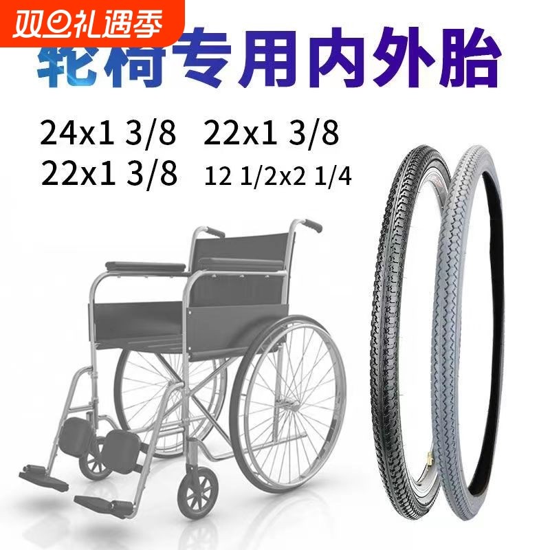 轮椅轮胎20/22/24寸x1 3/8轮椅后轮胎内胎外胎免充气实心胎前12寸