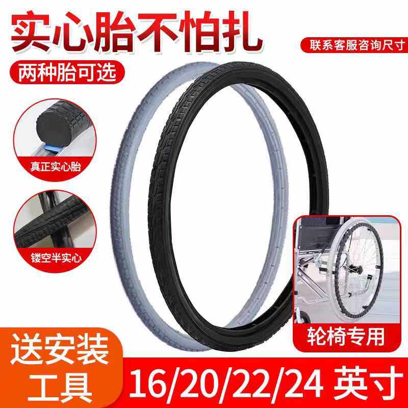 轮椅轮胎20/22/24/16寸轮椅后轮胎免充气实心胎轱辘轮子配件车胎