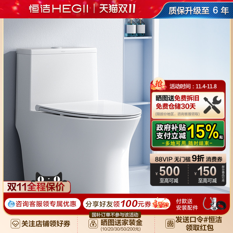 [下拉领百补]恒洁马桶虹吸式家用防臭卫浴陶瓷佛山节水坐便器512