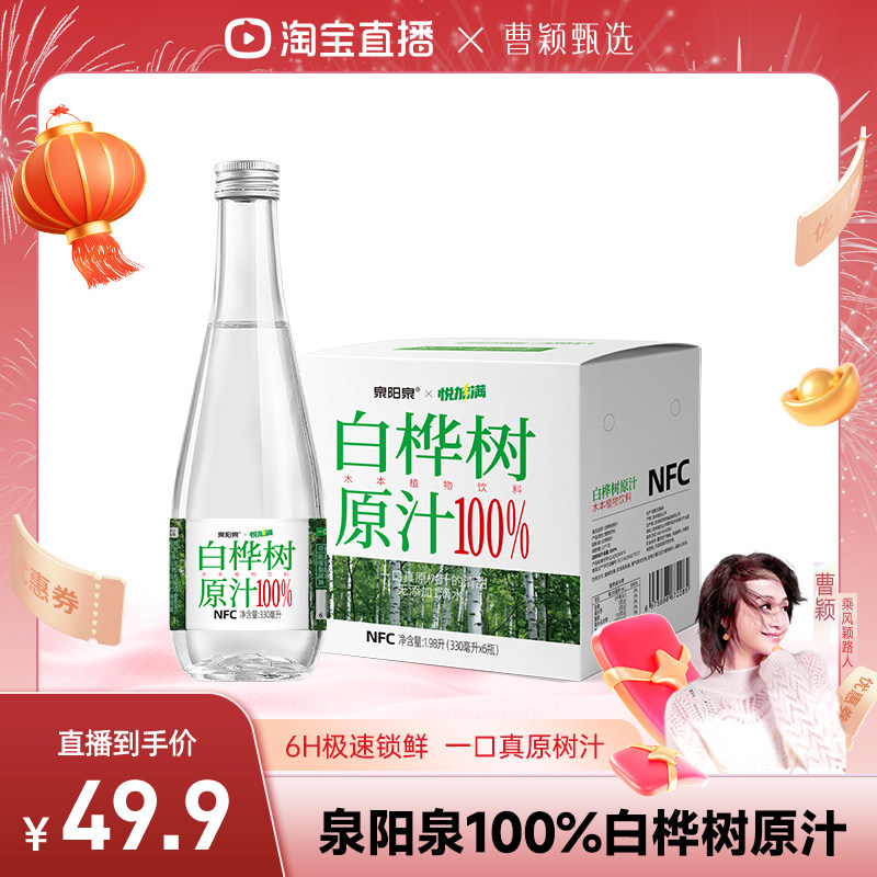 【曹颖甄选】泉阳泉悦加满330ml*6瓶100%白桦树汁无添加植物饮料
