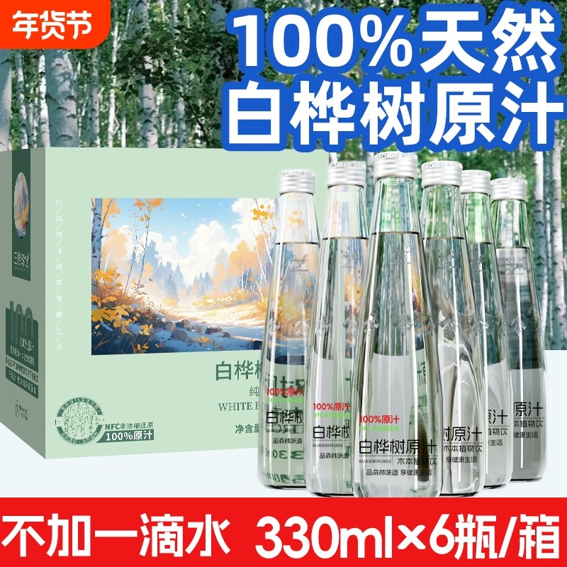 美桦说白桦树汁100%NFC纯原汁大兴安岭野生天然原液植物饮料整箱