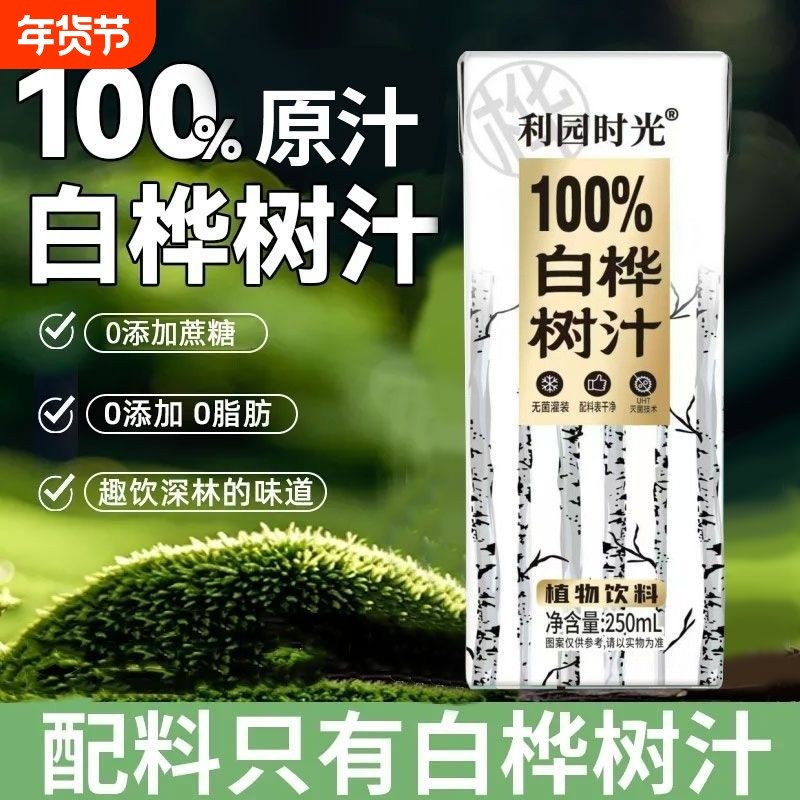 白桦树汁鲜采原汁250ml*10盒整箱解渴便携植物饮料无添加0添加剂