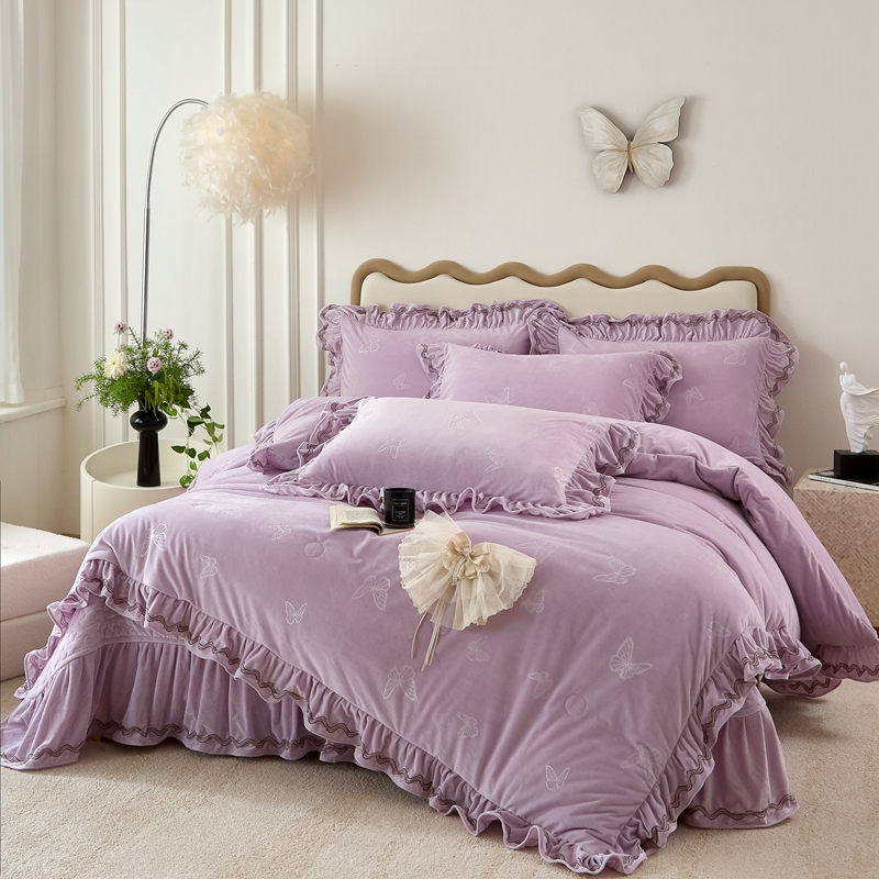 2025新款加厚保暖双面牛奶绒四件套秋冬防寒加绒花边床单4件套