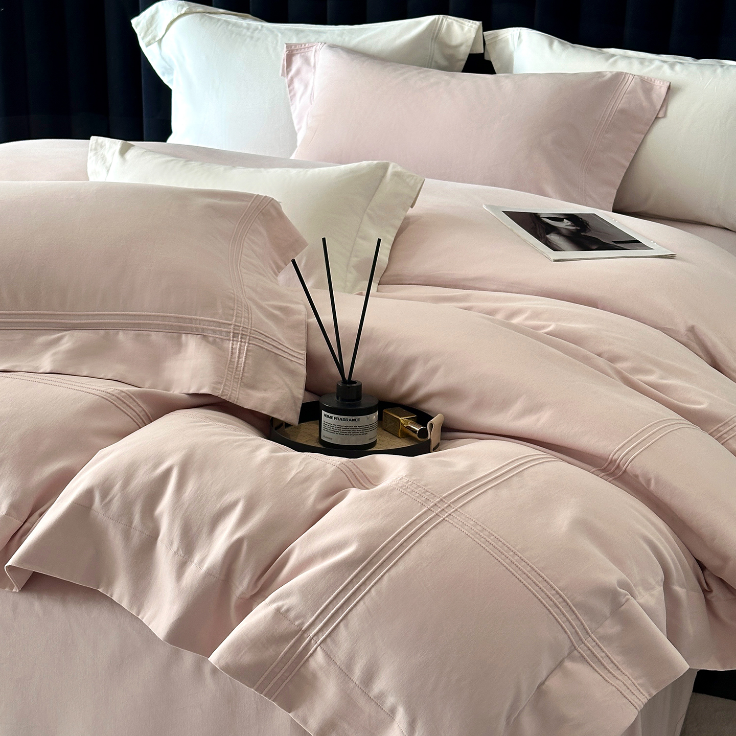 纯棉床上四件套100全棉60支长绒棉被套网红款简约床单4件套床笠款