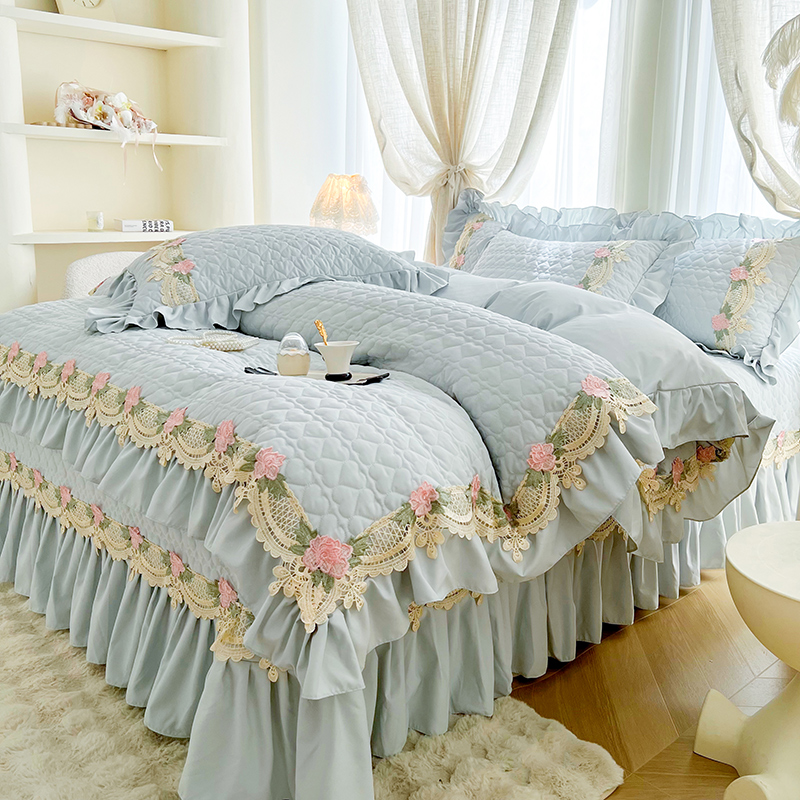 A类母婴级珍珠棉花边床盖四件套韩式公主风加厚床单4件套双人被套