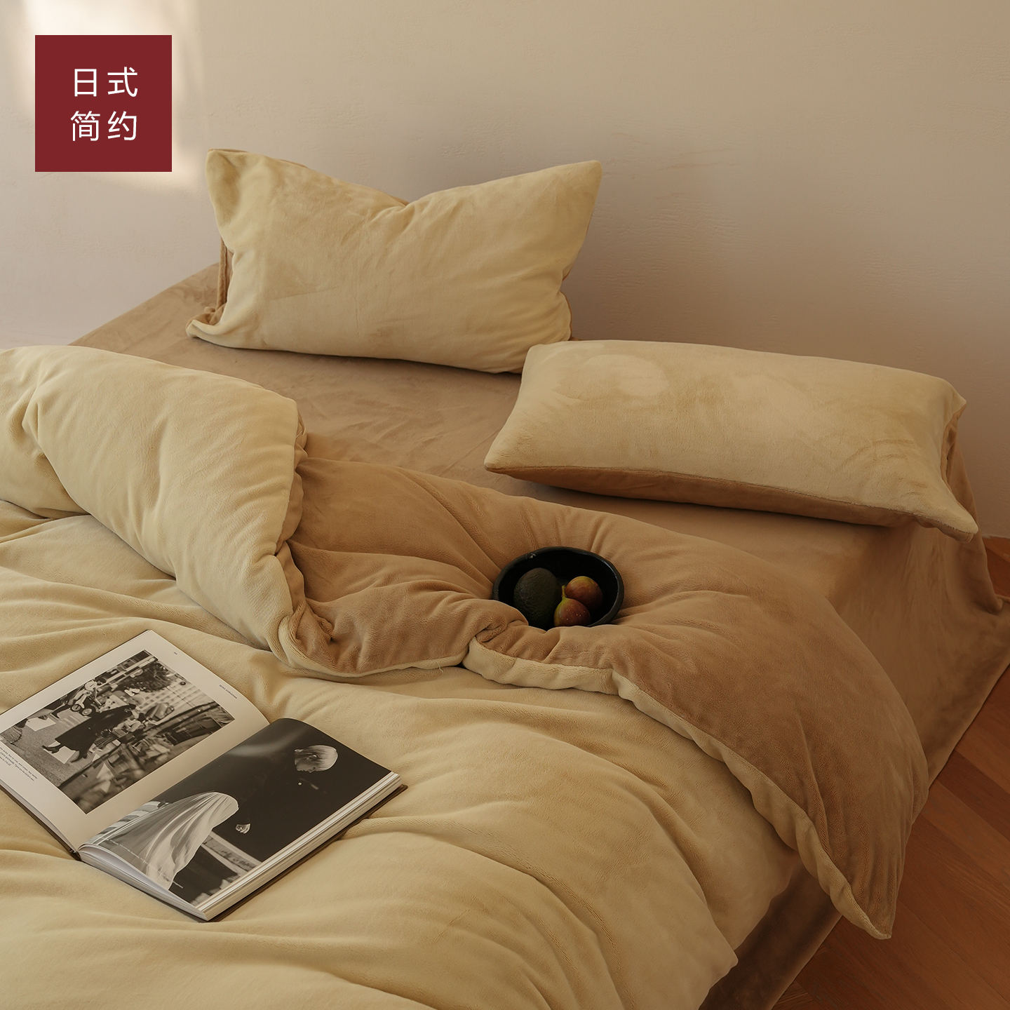 2025年秋冬新款保暖加绒四件套 加厚牛奶绒被套床笠款床单4件套