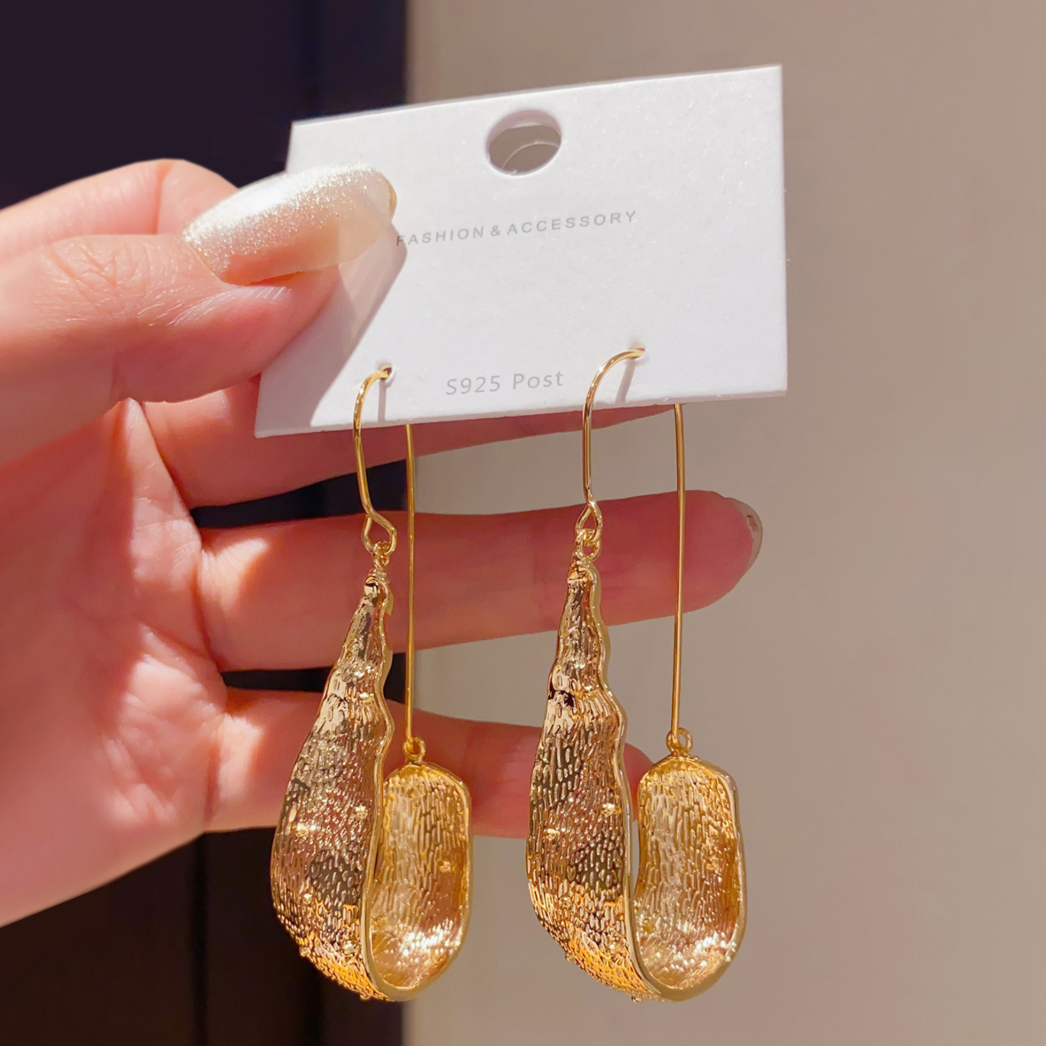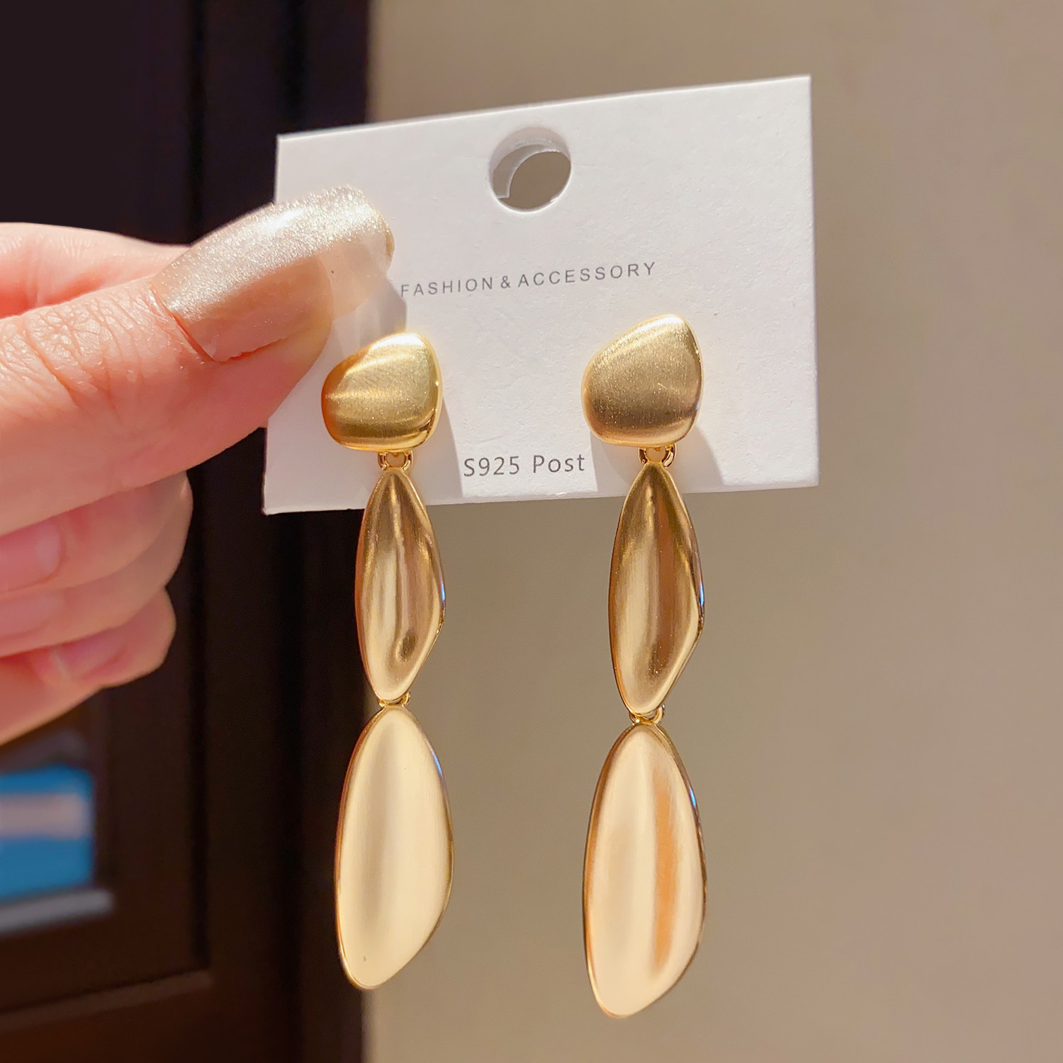 欧美轻奢金属不规则长款大耳环女简约个性复古夸张高级感耳圈耳饰