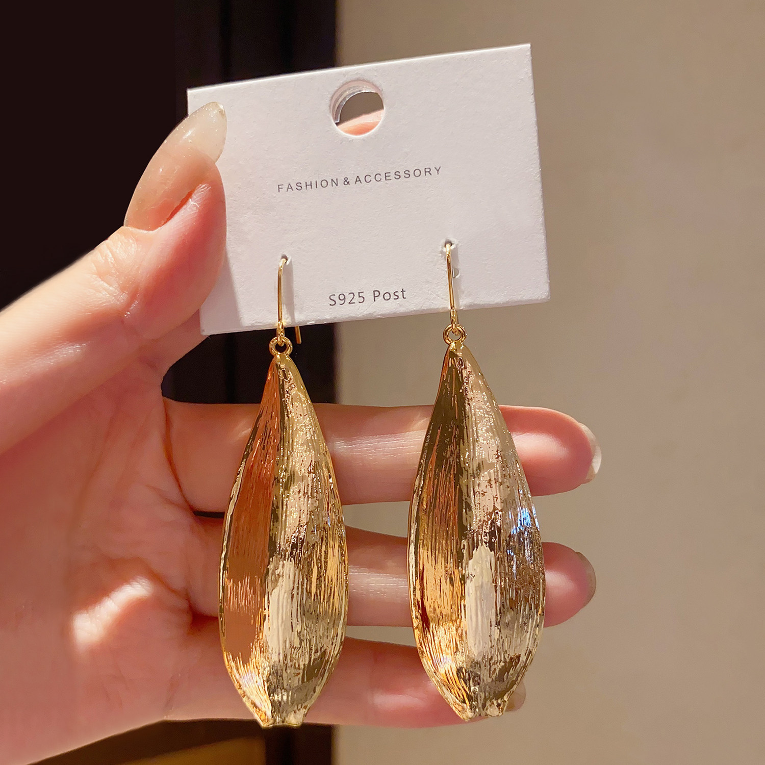 欧美复古独特设计肌理纹树叶耳环女小众夸张长款耳钩耳饰2025新款
