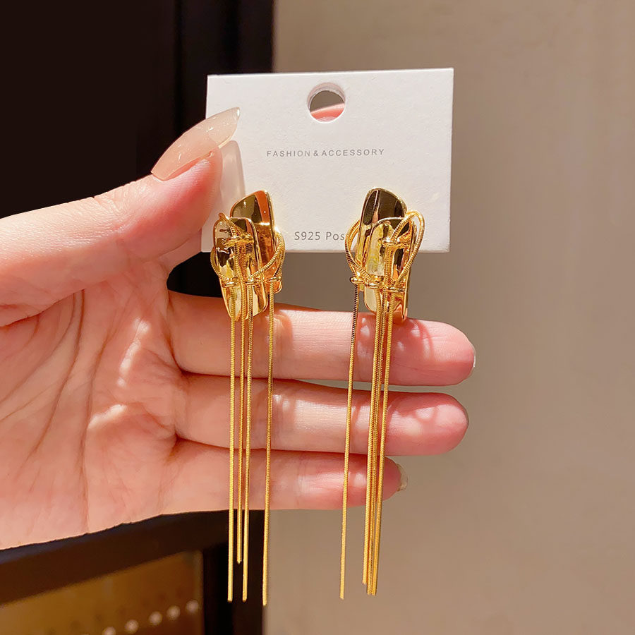 欧美复古夸张金属流苏18K金色大耳环女轻奢个性气质长款耳坠耳饰
