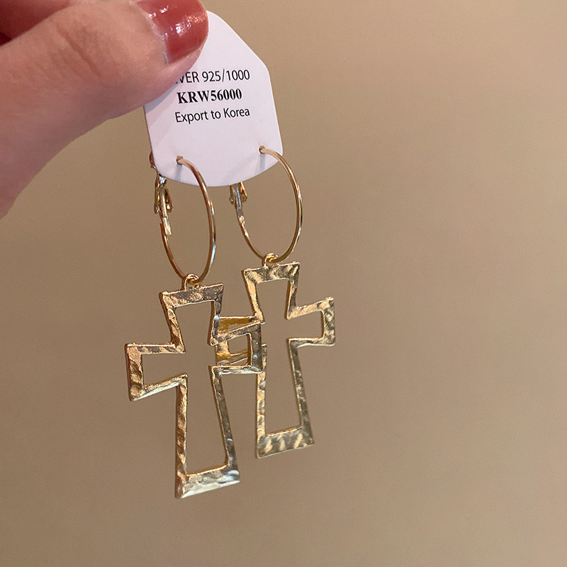 欧美复古十字架耳环女镂空金属长款个性耳钉小众夸张轻奢气质耳饰