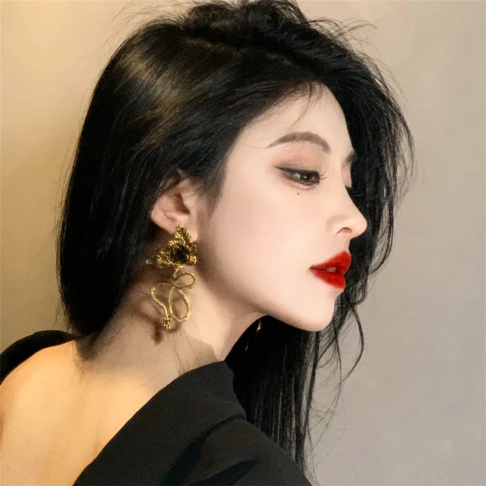 zoozmomo玫瑰花蛇形长款耳环女欧美夸张复古耳坠大气高级感耳饰潮