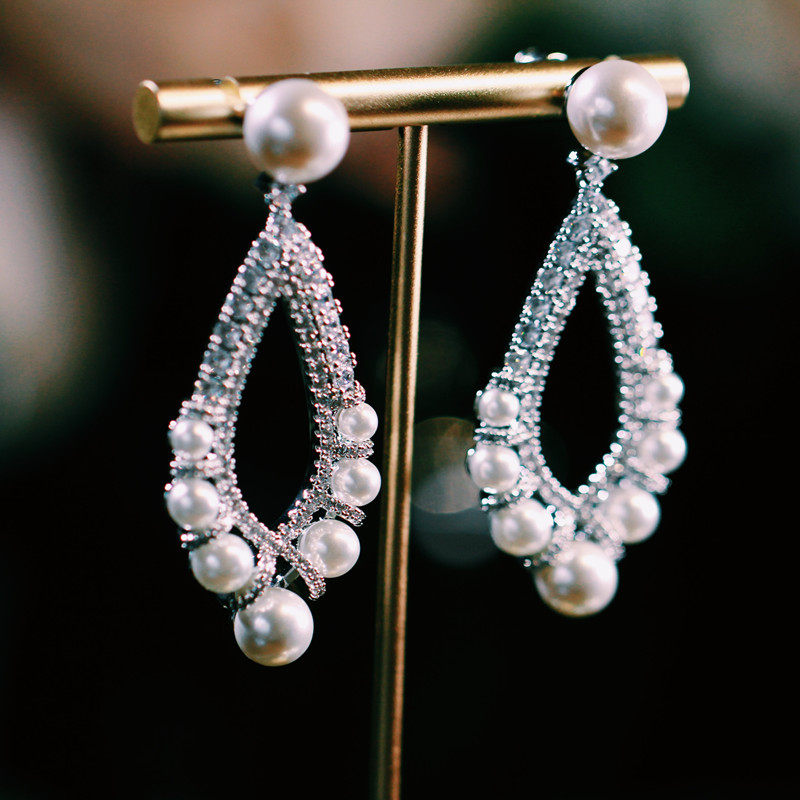 小众法式欧美夸张复古宫廷珍珠新娘礼服耳环大脸圆脸耳饰长款大气