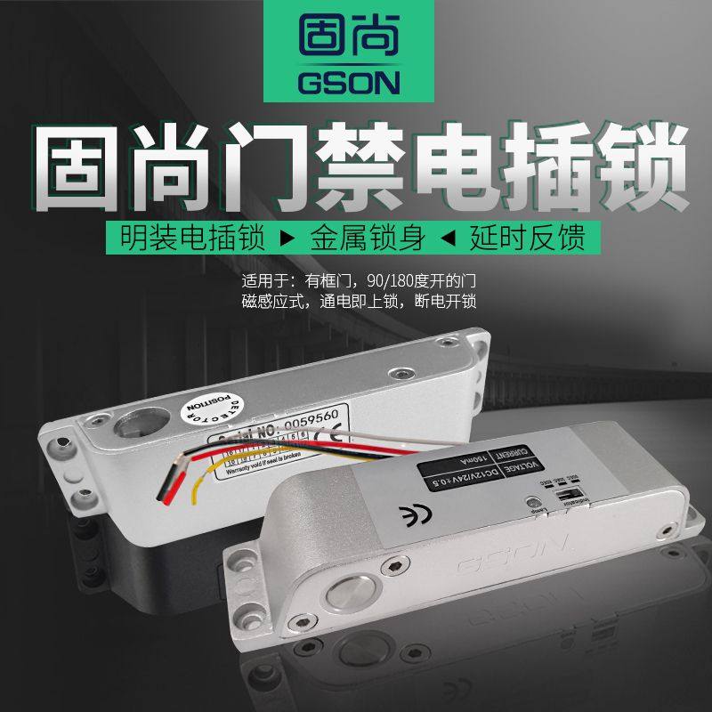 低温延时电插锁门禁锁明装暗装玻璃门12V 电子锁无框门电控插销锁