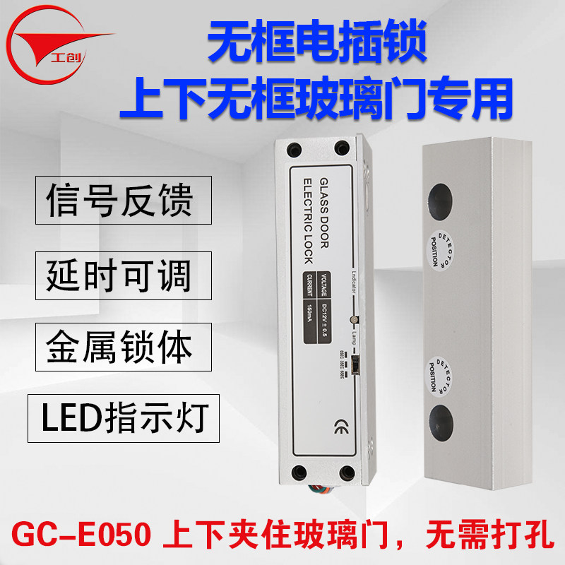 工创 上下无框玻璃门电插锁插销锁五线低温延时电插锁上下夹玻璃