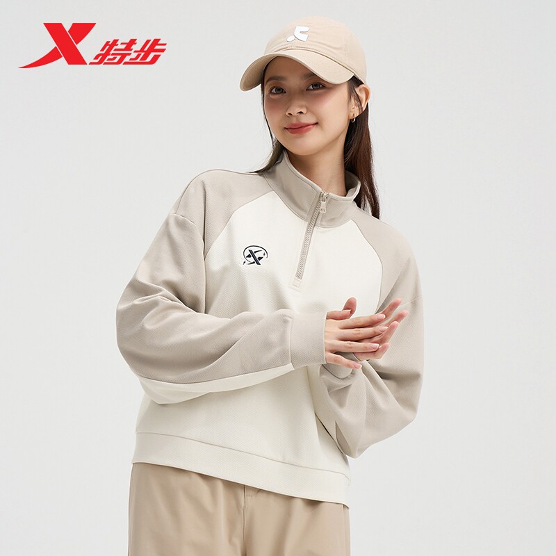 特步卫衣女2025秋季新款针织套头衫立领时尚运动上衣976328920583