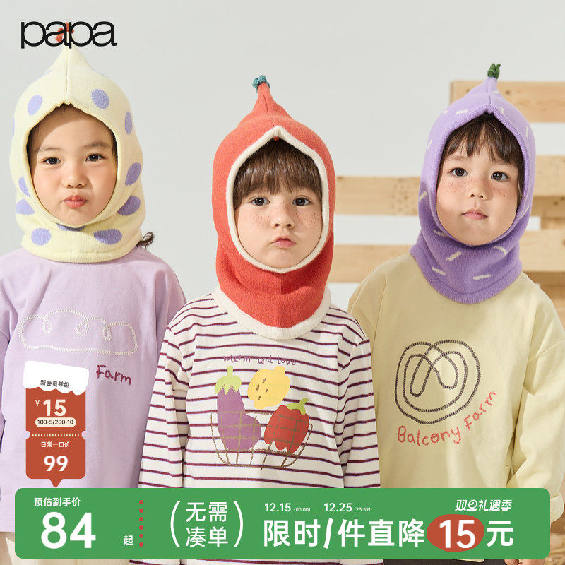 【新品】papa爬爬秋季儿童套头针织帽子男女宝宝防风保暖可爱