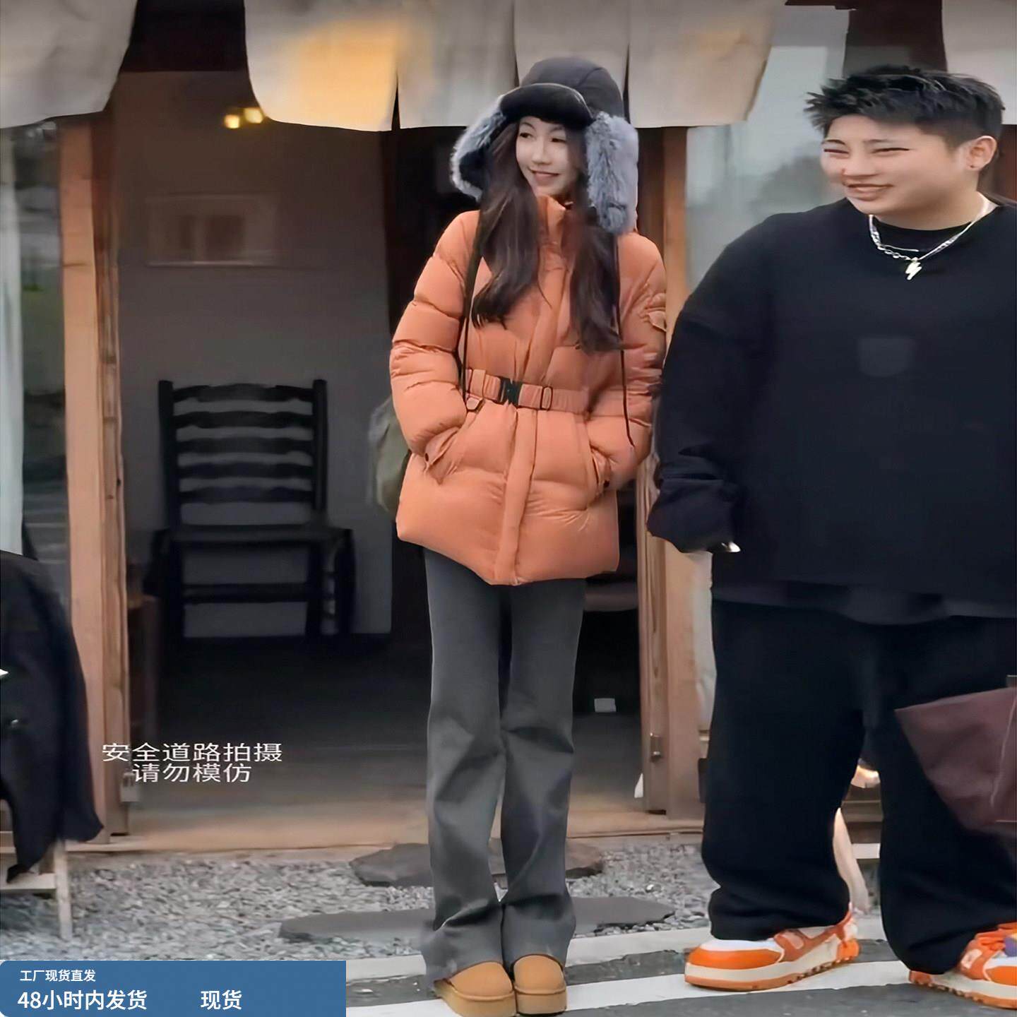 橘色收腰羽绒服女中长款2025冬新款欧货修身显瘦白鸭绒巨好看外套