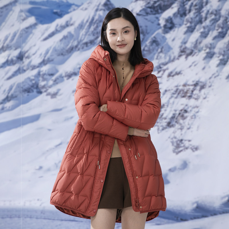 Anlom/娅奴羽绒服外套新款鸭绒毛冬宽松时尚桔色羽绒服女冬中长款