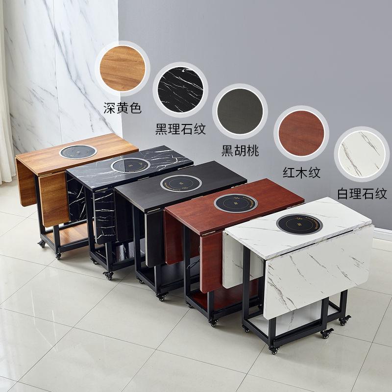 涮肉火锅小户型方桌子4人6人餐桌电磁炉可折叠长方形饭桌家用移动