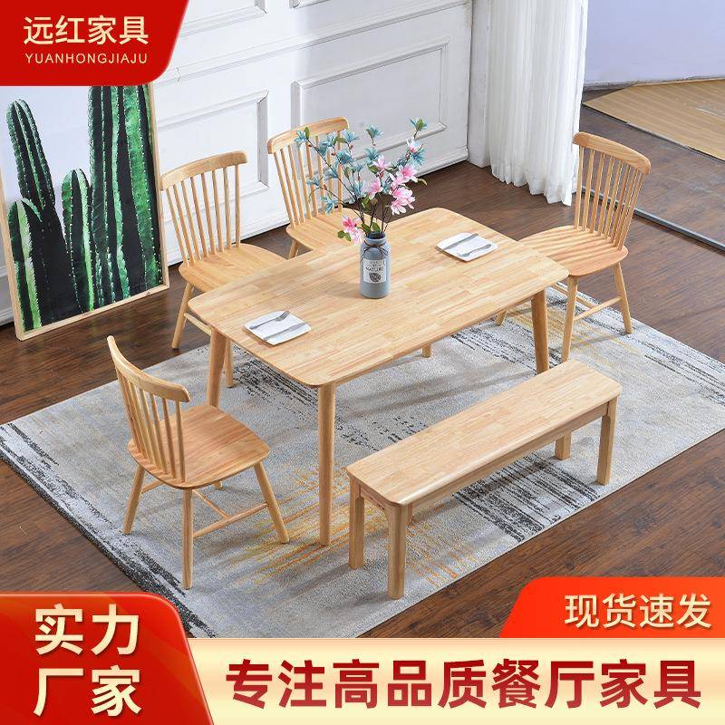 实木餐桌长方形木质现代简约吃饭桌子家用小户型4人6人餐桌椅组合