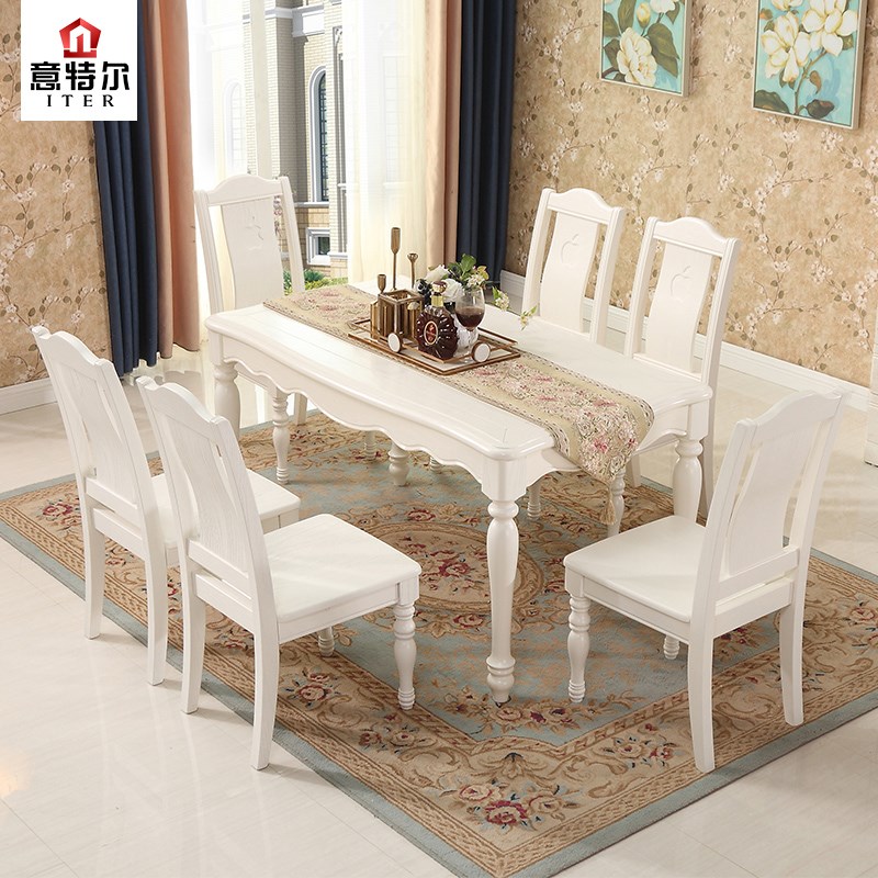 奶油风实木餐桌长方形西餐桌小户型客厅饭桌家用4-6人餐桌椅组合